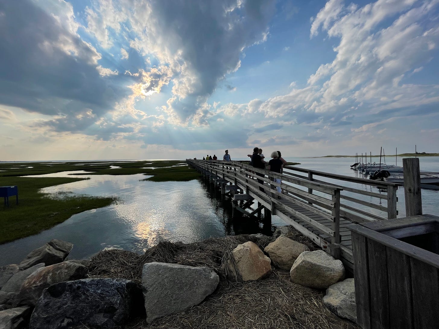 TOP PHOTO: “Simpsons Clouds” over Ganoga Lake, Pennsylvania. BELOW: It’s going to be a very good day at Cape Porpoise Harbor in Maine. BOTTOM (1): The expanse of clouds offers awe and inspiration on Cape Cod in Massachusetts. BOTTOM (2): Mackerel clouds, blue sky and a bright kite on a Cape Cod beach.